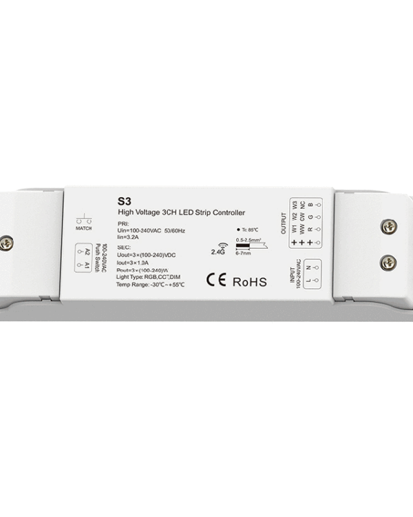 RGB/CCT/Dimming 3 Channel High Voltage LED Strip Controller S3