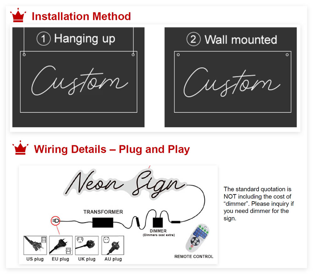 There’re two different types for option, Integrated Neon Type & Split-Neon Type. The workmanship is different.