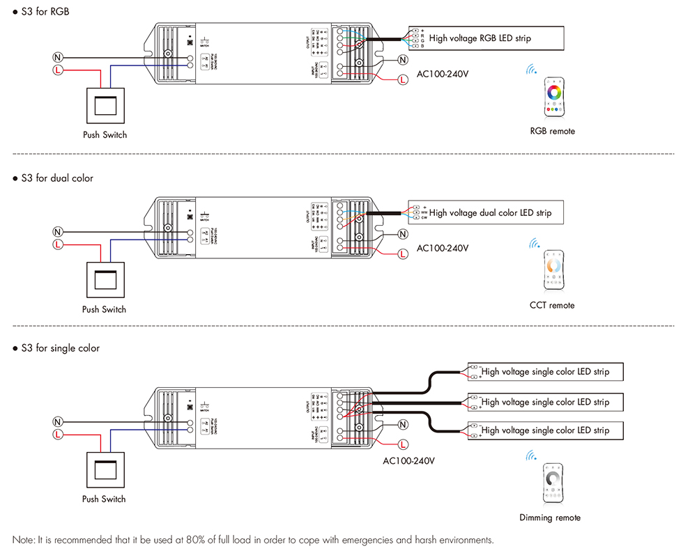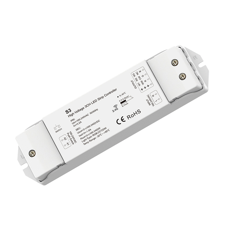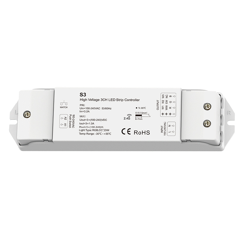 RGB/CCT/Dimming 3 Channel High Voltage LED Strip Controller S3