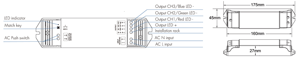 • 3 in 1 function, used for control RGB, color temperature or single color LED strip.