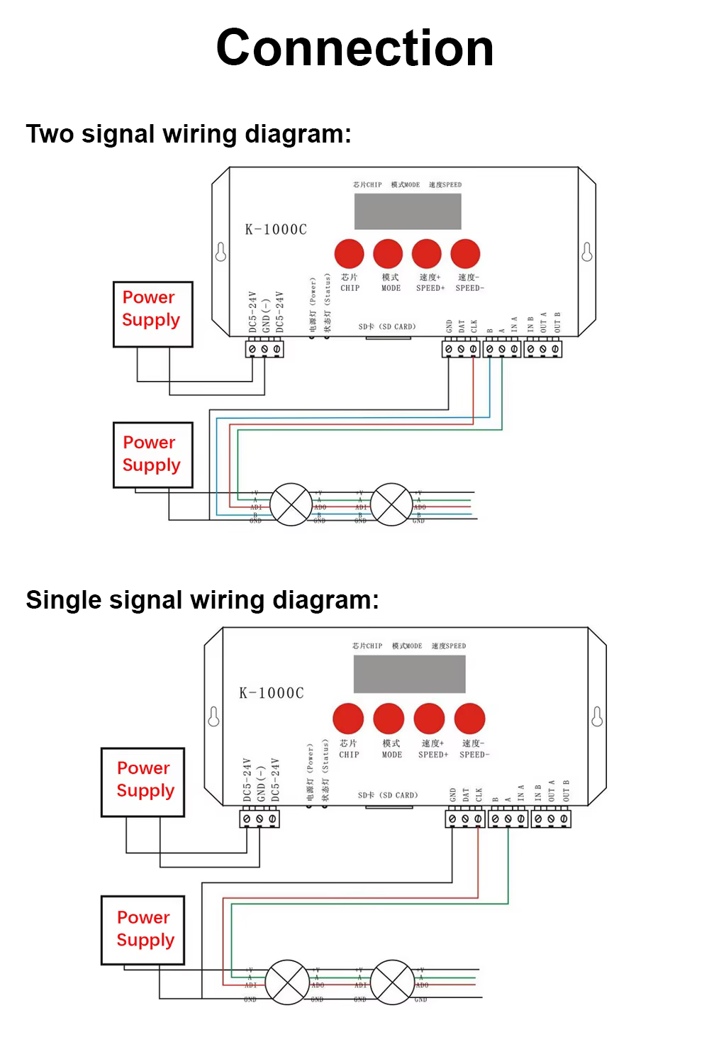 5. The controller can be used alone or in cascade. The cascade adopts the photoelectric isolation method, featuring anti-interference and better stability. The cascade distance between two controllers can reach 100m by using pure copper power cord of 0.5 mm2.
