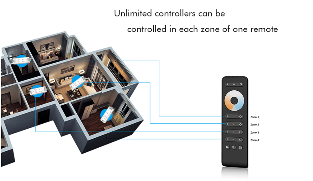 ● Match with all RF 2.4G single zone or multiple zone dual color or remote control.